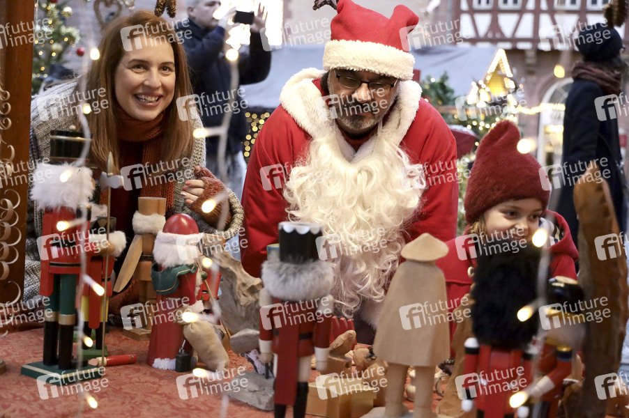 Elena Uhlig, Antonio Putignano und Yuna beim Fototermin zum Drehstart vom ZDF-Film 'Weihnachtstöchter' (AT) im Saalhof. Frankfurt, 19.12.2019