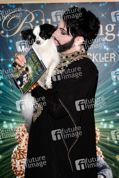 Hund Billy King und Harald Gloeoeckler bei der Buchvorstellung 'Billy King - mein Leben mit Harald Glööckler'. Berlin, 28.02.2013