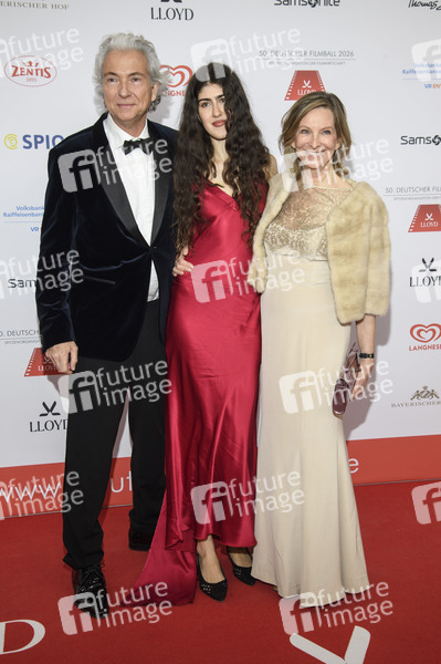 Cord Troebst, Ella Nussbaum (Tochter von Jack White) und Andrea Sixt beim 50. Deutschen Filmball 2026 im Hotel Bayerischer Hof. München, 24.01.2026