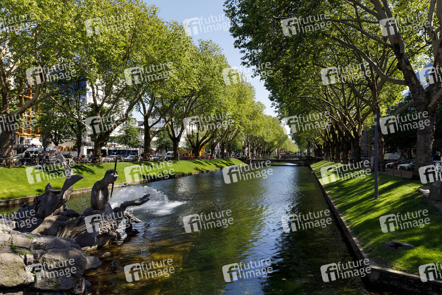 Gewässer, Düsseldorf Mitte, Kö, Königsallee, Wassergraben, Aushängeschild, Prachtmeile, Einkaufsmeile, Luxusmeile, Boulevard, Luxuseinkaufsstraße, Einkaufsstraße, Touristenmagnet, Touri-Hotspot, Girardetbrücke, Fußgängerbrücke, Denkmalliste, Denkmalschutz, Denkmal, Tritonenbrunnen, Sightseeing Symbolbild, Symbolfoto