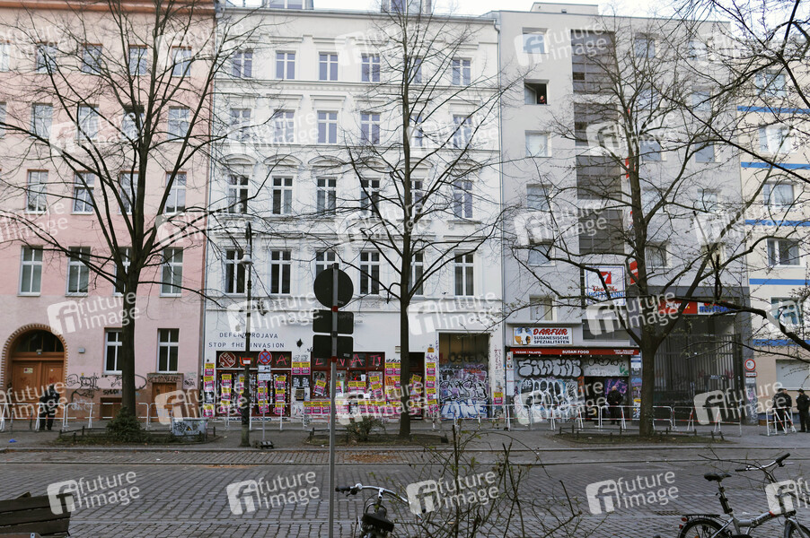 Gegen 8.30 Uhr wurde die Kiezkneipe 'Meuterei' in Kreuzberg von der Polizei geräumt. Linke Gruppen haben für Donnerstag fünf Demos, davon drei mit dem Zielort vor der besetzten Kneipe, angekündigt. Seit Mittwochnachmittag hat die Polizei deshalb eine Sperrzone um die Kneipe gezogen. 1100 Einsatzkräfte sicherten die Räumung der Kiezkneipe ab. Berlin, 25.03.2021