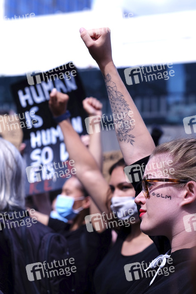 'Silent Demo' gegen Polizeigewalt und Rassismus nach dem Tod des Afroamerikaners George Floyd am Alexanderplatz. Berlin, 06.06.2020