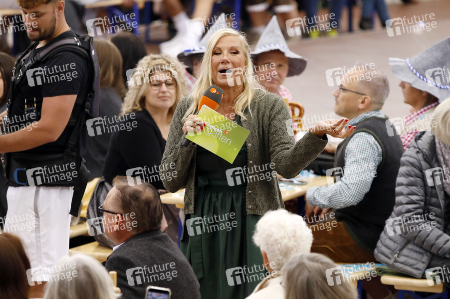 Andrea Kiewel in der TV Show 'ZDF-Fernsehgarten - Oktoberfest' auf dem Mainzer Lerchenberg. Mainz, 28.09.2025