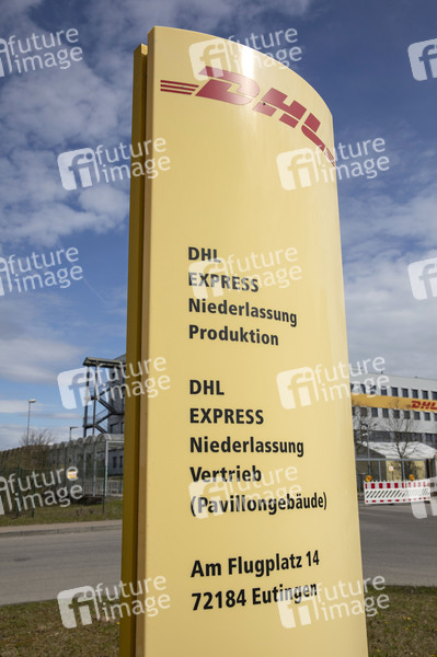 Informationstafel DHL-Frachtpostzentrum. (Symbolbild, Themenbild) Eutingen im Gäu, 11.04.2021