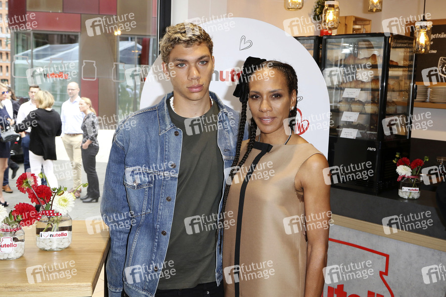 Barbara Becker mit Sohn Elias Becker bei der Eröffnung vom Nutella Pop-Up Cafe in HafenCity Überseeboulevard. Hamburg, 21.08.2019
