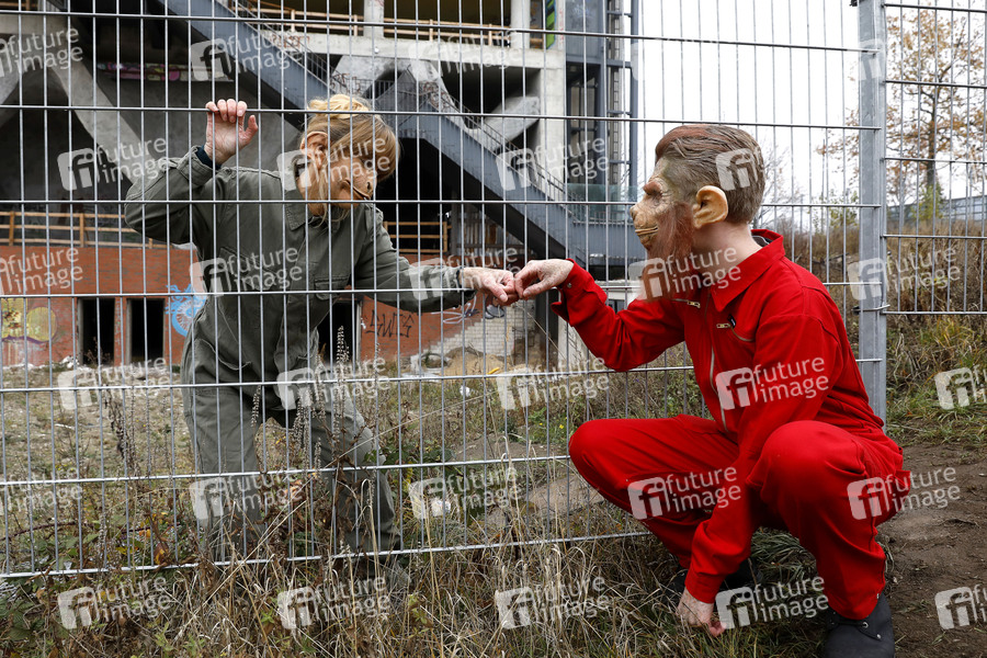 GEEK ART - Bodypainting meets SciFi, Fantasy and more: 'Planet der Affen' Photoshooting mit den Models Maria und Paul als Schimpansen auf dem Expo-Gelände. Hannover, 02.01.2019 - Ein Projekt des Fotografen Tschiponnique Skupin und des Bodypainters und Transformakers Enrico Lein