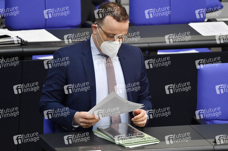 Jens Spahn in der 221. Sitzung des Deutschen Bundestages im Reichstagsgebäude. Berlin, 15.04.2021