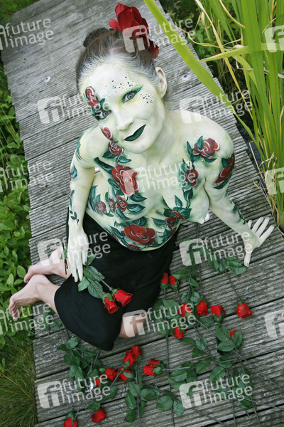 Bodypainting, Erotik, Frau, Mädchen, nackt, draußen, weiblich, Körperkunst, Kunst, Malerei, schwanger, Bauch, Garten, erotic, woman, girl, nude, outdoor, female, body art, body painting, pregnant, garden