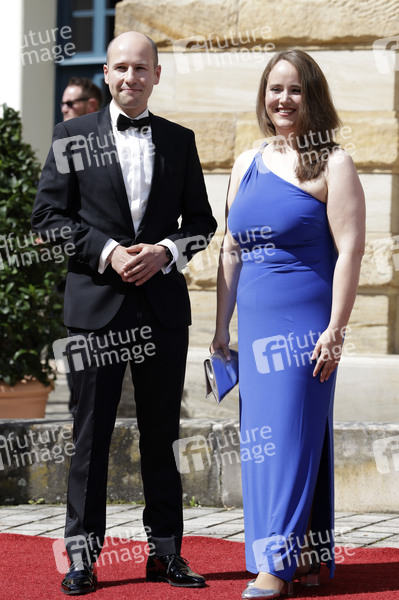 Ricarda Lang mit Ehemann Florian Wilsch bei der Eröffnung der 113. Richard-Wagner-Festspiele 2025 mit der Neuinszenierung von 'Die Meistersinger von Nürnberg' im Bayreuther Festspielhaus. Bayreuth, 25.07.2025