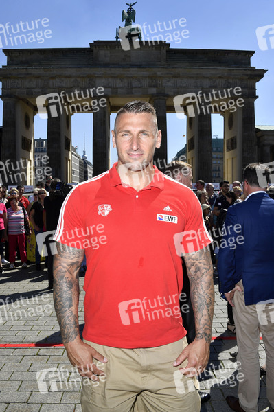 Kevin Kuske beim Fototermin zum 16. Internationalen Weltblutspendertag am Brandenburger Tor. Berlin, 14.06.2019
