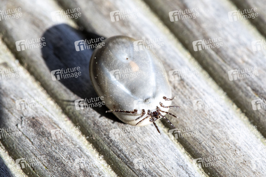 Vollgesogene Zecke. Sommerzeit ist Zeckenzeit. Ein Zeckenbiss kann schwere gesundheitliche Schäden nach sich ziehen. Meersburg, 21.08.2020