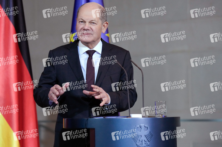 Olaf Scholz beim Empfang des Ministerpräsidenten der Republik Polen mit militärischen Ehren zu einem gemeinsamen Gespräch mit dem Bundeskanzler und anschließendem Pressestatement im Bundeskanzleramt. Berlin, 12.02.2024