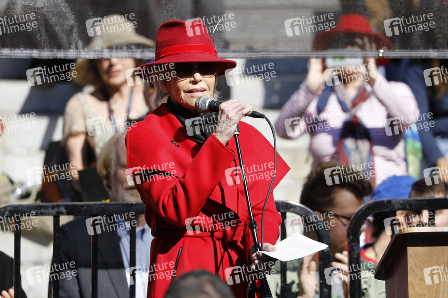 Jane Fonda bei der Fire Drill Fridays Kundgebung gegen den Klimanotfall vor dem Rathaus. Los Angeles, 07.02.2020