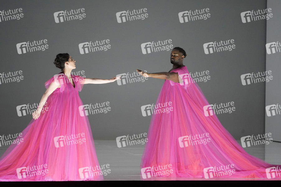 Susan Zarrabi und John Holiday bei der Fotoprobe der Oper 'Echnaton' unter der Regie von Barrie Kosky in der Komischen Oper Berlin im Schillertheater. Berlin, 12.03.2025