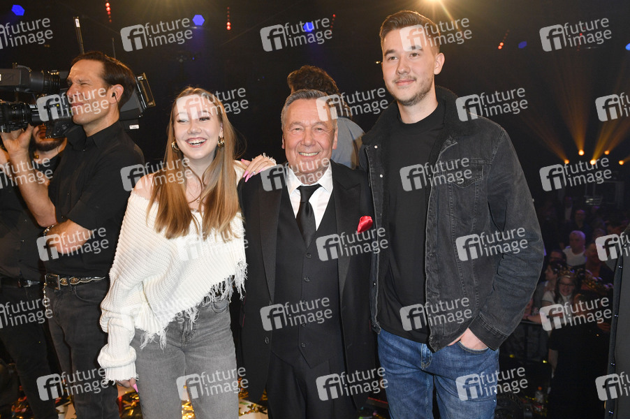 Roland Kaiser mit Tochter Tochter Annalena und Sohn Jan in der TV Show 'Alle singen Kaiser - das große Schlagerfest' in der Media City. Leipzig, 16.03.2019
