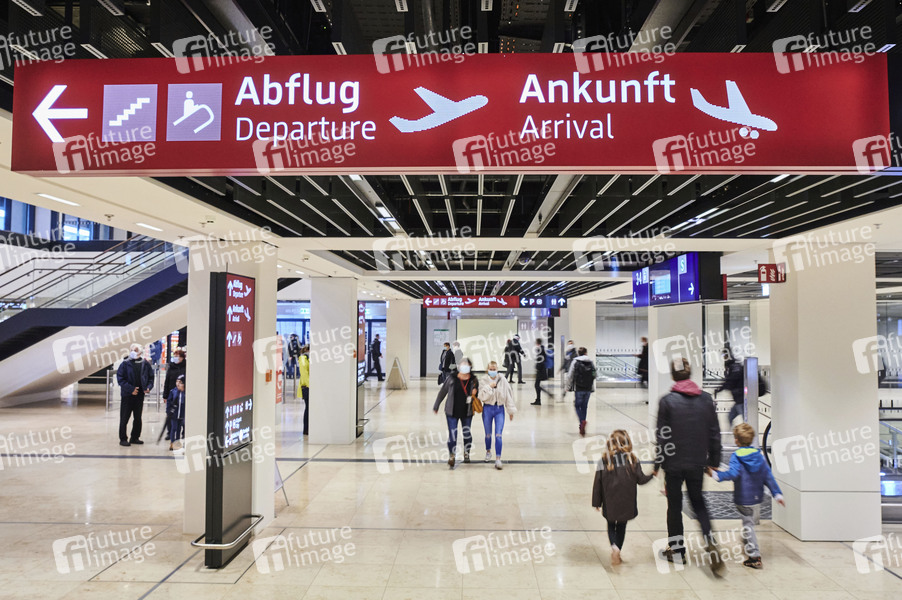 Erste Gäste am Terminal 1 des neuen Flughafens Berlin-Brandenburg (BER). Schönefeld, 31.10.2020