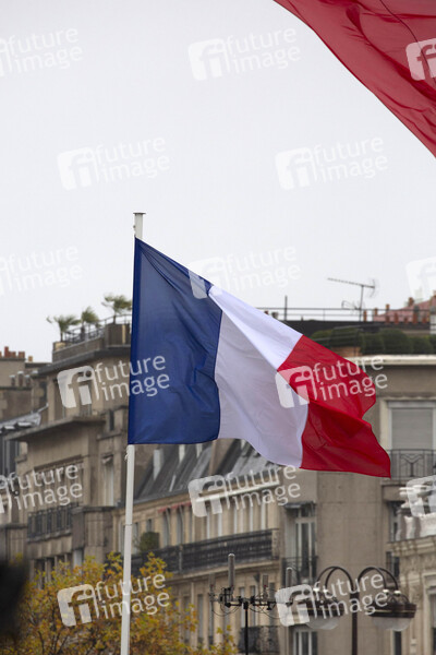 Französische Staatsflagge bei der 101. Jahrfeier des Waffenstillstands von 1918 am Triumphbogen. Paris, 11.11.2019