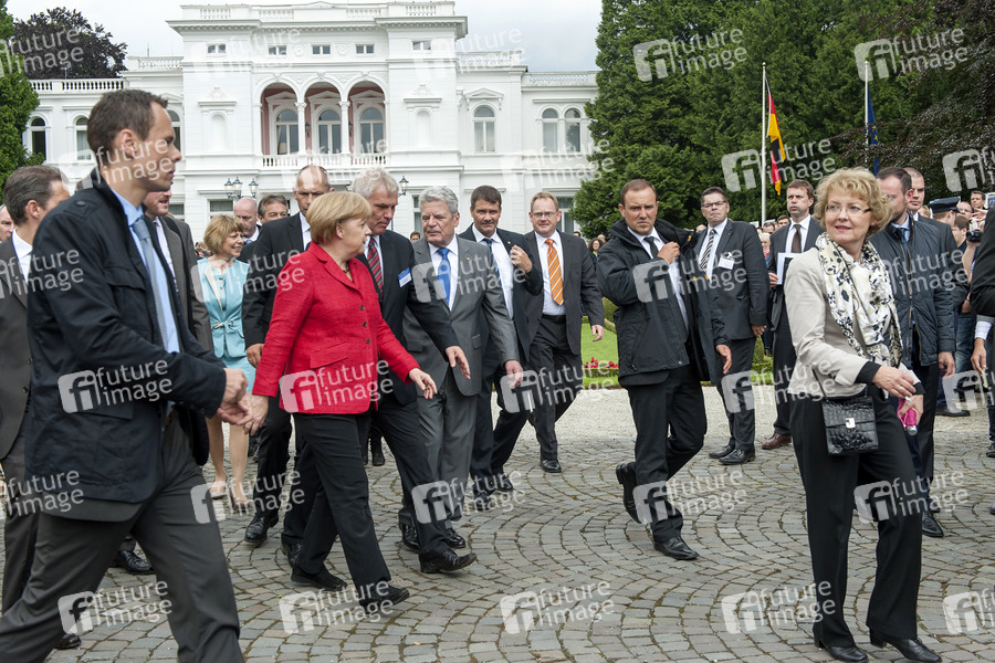 Angela Merkel und Joachim Gauck vor der Villa Hammerschmidt am Tag der offenen Tür in der Villa Hammerschmidt und dem Palais Schaumburg. Bonn, 29.06.2013