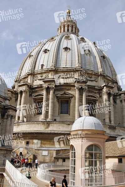 Vatikan, die größte der vier Patriarchalbasiliken in Rom, Zentrum der Vatikanstadt, fasst 60.000 Personen, Fläche von 15.160 m², eine der größten Kirchen der Welt, die Bauzeit betrug rund 120 Jahre, die doppelschalige Kuppel der Basilika St. Peter ist das größte freitragende Ziegelbauwerk der Welt
