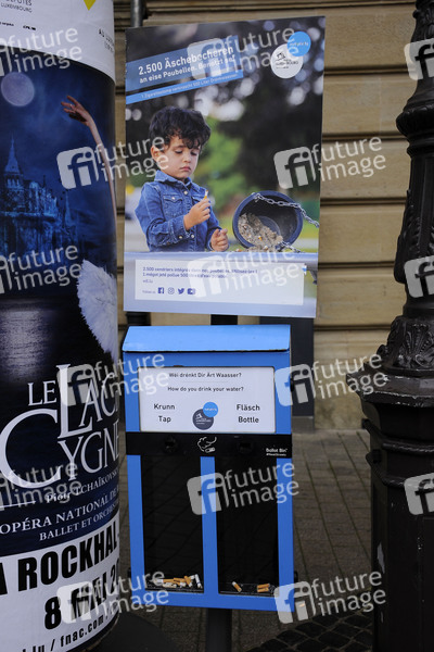 Großherzogtum Luxemburg, Ballot Pins, Wahlurne Aschenbecher, Ascher, Kippen in den Kasten, Müllvermeidung, Umweltschutz, Kreislaufwirtschaft, Sauberkeit, Umweltverschmutzung, Recyceln von Zigarettenfiltern, Kippen, Zigarettenkippen, Zigaretten, Zigarette, Zigarettenstummel, Symbolfoto, Symbolbild