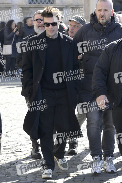 Fedez bei der Ankunft der Teilnehmer vom Festival di Sanremo 2026 zum Empfang beim italienischen Präsidenten auf der Piazza del Quirinale. Rom, 13.02.2026