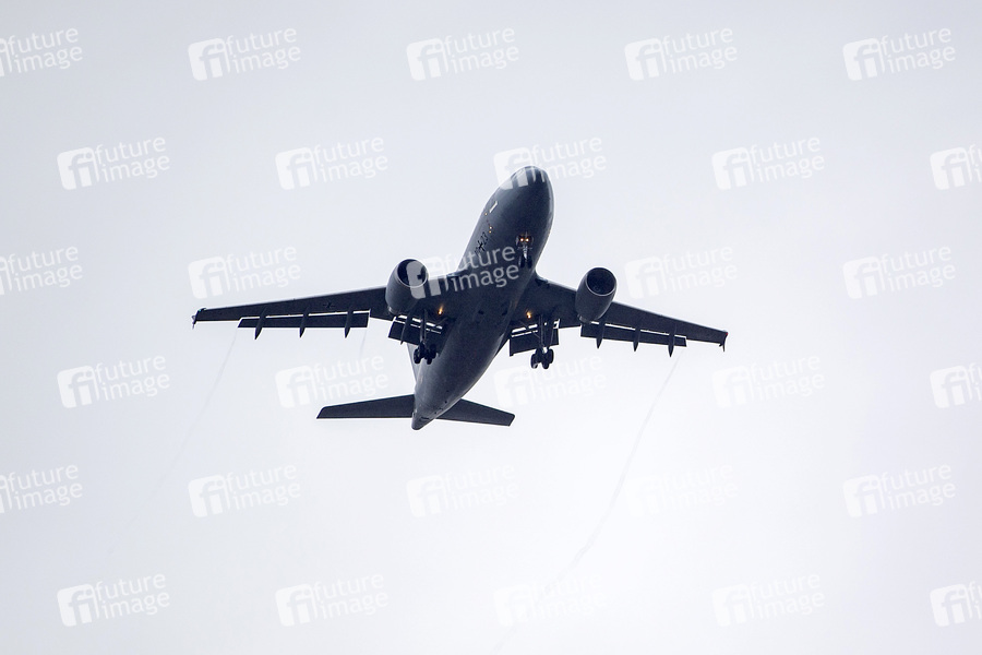 Flugzeug der Luftwaffe patrouillieren über dem Domplatz beim Pressetermin im Rahmen der Innenministerkonferenz Thüringen 2020 . Erfurt, 18.06.2020