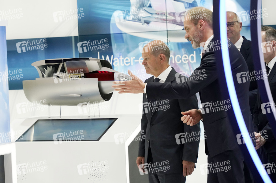 Olaf Scholz und Lars Wagner bei der ILA-Eröffnung mit anschließendem Rundgang auf dem ILA-Gelände am Flughafen BER Berlin-Brandenburg. Berlin, 22.06.2022