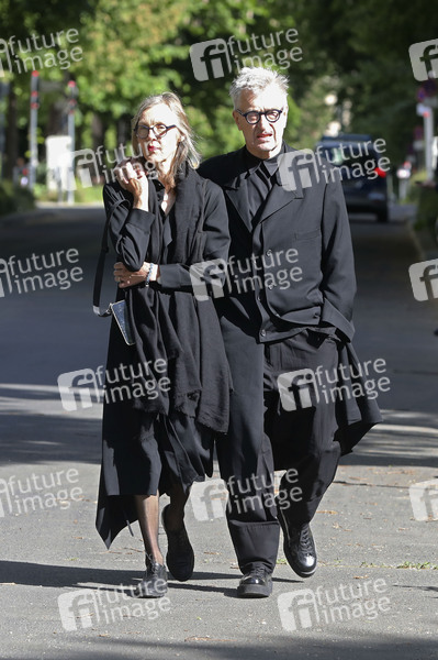 Wim Wenders mit Ehefrau Donata Wenders bei der Beisetzung der Holocaust-Überlebenden Margot Friedländer auf dem Jüdischen Friedhof in Berlin-Weißensee. Berlin, 15.05.2025