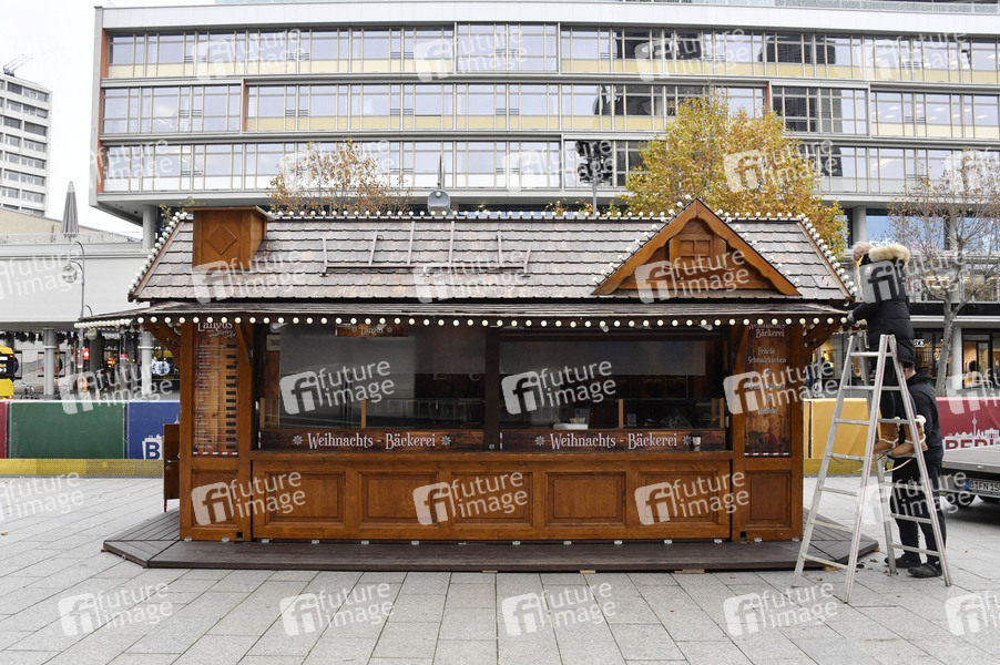 Als Alternative zu abgesagten Weihnachtsmärkten werden Buden in der City West aufgestellt. Bisher wurden dafür der Breitscheidplatz, der Kurfürstendamm vor dem Karstadt-Kaufhaus, der Joachimsthaler Platz am Rande des Ku’damms und die Fußgängerzone Wilmersdorfer Straße ausgewählt. Für Besucher gelten dort wie im Rest Berlins die Corona-Regeln. Berlin, 30.11.2020