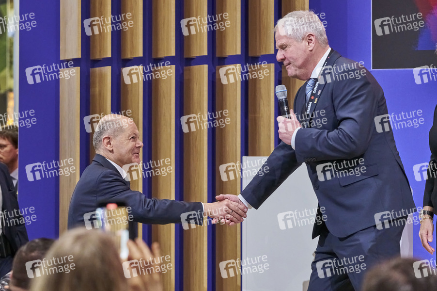 Deutsche Messe AG, Hannover Messe Industrie, Weltleitmesse der Industrie, Industriemesse, Industrieschau, Automatisierung, IT-Sicherheit, KI, Technologie, Wirtschaft, Ausstellung, Fair, Messe, Eröffnung, Opening, Leitmesse, Synergie und Kooperation, Wasserstoff & Brennstoffzellen, CO2-neutrale Produktion, Energizing a Sustainable Industry, Künstliche Intelligenz, Partnerland Kanada, Politiker, SPD, Bundeskanzler