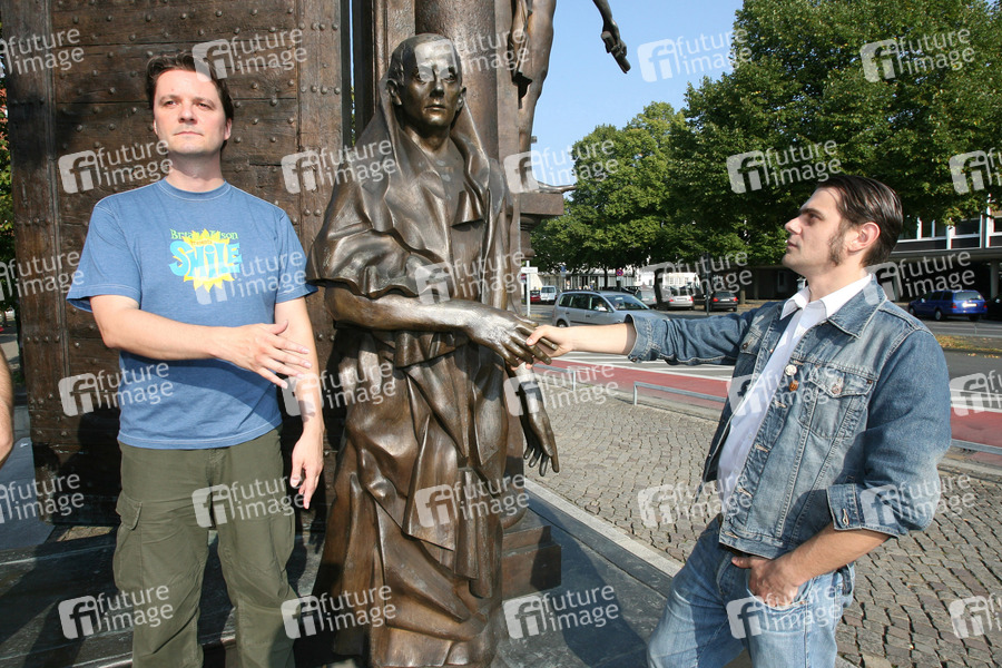 Promofotosession mit den Künstlern der Lesebühne OraL (Organisation für angewandte Literatur) in Hannover bei der Bronze-Skulptur der 'Göttinger Sieben'