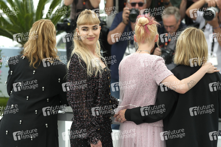 Thora Birch, Imogen Poots, Kristen Stewart und Kim Gordon beim Photocall zum Kinofilm 'The Chronology of Water' auf dem Festival de Cannes 2025 / 78. Internationale Filmfestspiele von Cannes am Palais des Festivals. Cannes, 16.05.2025
