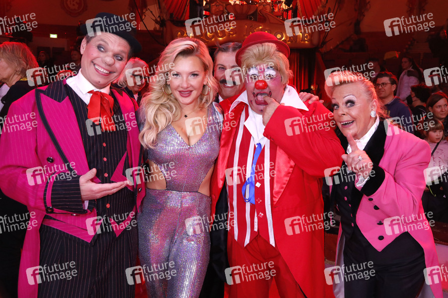 Sidney Balder, Evelyn Burdecki, Jens Riewa, Tony Alexis und Jeanette-Babette Alexis bei der Aufzeichnung der SAT.1-Sendung 'Stars in der Manege' im Circus Krone Bau. München, 10.12.2022