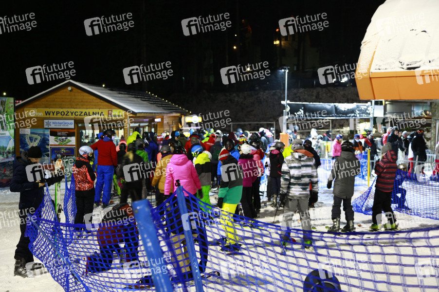 Großer Menschenandrang bis zum Abend auf den Skipisten im niederschlesischen Karpacz (Krummhübel), einen Tag vor dem harten Lockdown in Polen (28.12.2020-17.01.2021). Karpacz, 27.12.2020