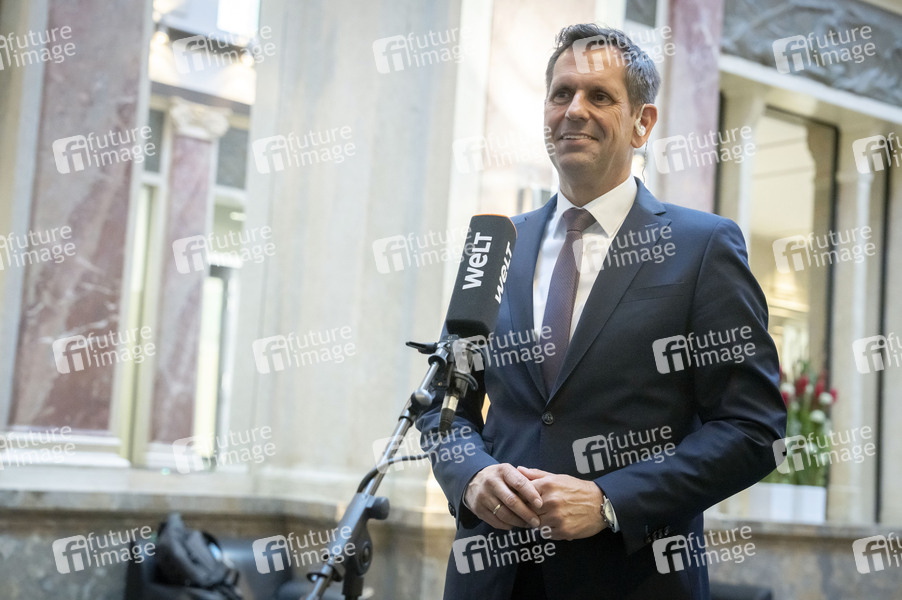Olaf Lies beim Pressestatement am Rande der 1054. Sitzung des Bundesrates im Plenarsaal des Preußischen Herrenhauses. Berlin, 23.05.2025