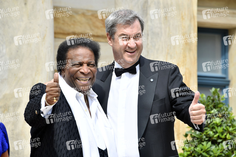 Roberto Blanco und Markus Söder bei der Eröffnung der Richard-Wagner-Festspiele 2024 mit der Premiere von Richard Wagners 'Tristan und Isolde' im Bayreuther Festspielhaus. Bayreuth, 25.07.2024
