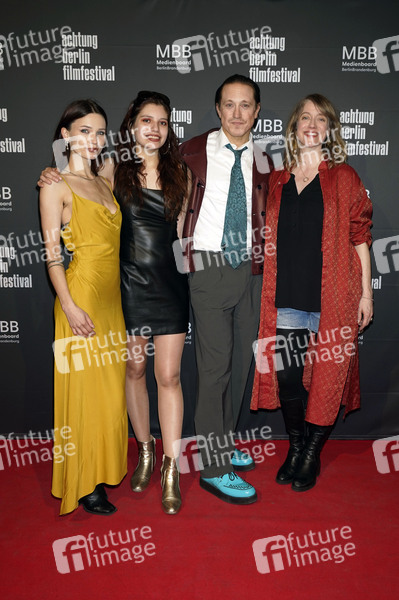 Alexandra Johansson, Gaia Arellano Reynoso, Timo Jacobs und Sarah Nevada Grether bei der Premiere des Kinofilms 'Hochstapler und Ponys' auf dem achtung berlin Filmfestival 2025 im Kino Babylon. Berlin, 08.04.2025