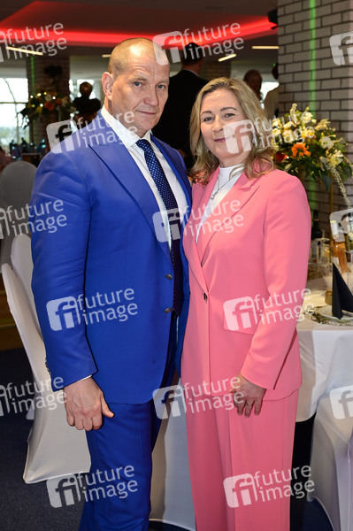 Claudia Pechstein mit Ehemann Matthias Große bei der Geburtstagsgala zum 80. Geburtstag von Dagmar Frederic im Restaurant am Müggelturm. Berlin, 15.04.2025
