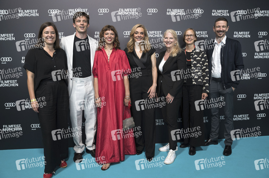 Julia Weigl, Jannis Niewöhner, Lilja van der Zwaag, Inga Leschek, Gast, Gast und Oliver Berben bei der Premiere der RTL+ Serie 'Die Nibelungen - Kampf der Königreiche' auf dem 42. Filmfest München 2025 im HFF Audimax. München, 27.06.2025
