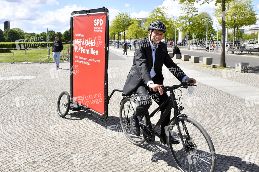 Rolf Mützenich bei einer Aktion über die Bilanz der Arbeit der SPD-Bundestagsfraktion vor dem Reichstagsgebäude. Berlin, 20.05.2021