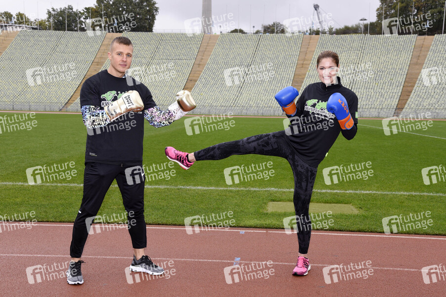 Alem Begic und Marie Lang beim Fototermin zur sportichen '#WocheChallenge' im Olympiastation München. Unter dem Motto 'Wir können was bewegen!' ruft die Welthungerhilfe zu dieser Challenge auf und bittet um Spenden für eine Welt ohne Hunger. München, 13.10.2020