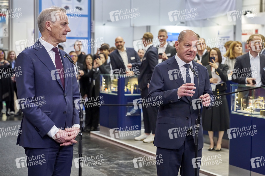 Deutsche Messe AG, Hannover Messe Industrie, Weltleitmesse der Industrie, Industriemesse, Industrieschau, Automatisierung, IT-Sicherheit, KI, Technologie, Wirtschaft, Ausstellung, Fair, Messe, Eröffnung, Opening, Leitmesse, Synergie und Kooperation, Wasserstoff & Brennstoffzellen, CO2-neutrale Produktion, Energizing a Sustainable Industry, Partnerland Norwegen, Jonas Gahr Støre, Jonas Gahr Störe, Politiker, Ap, Ministerpräsident von Norwegen, Bundeskanzler, SPD