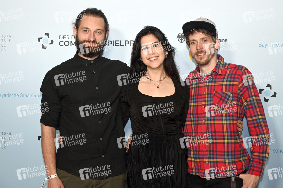 Team von Donausaurus bei der Verleihung des Deutschen Computerspielpreises 2022 in der TonHalle. München, 31.03.2022