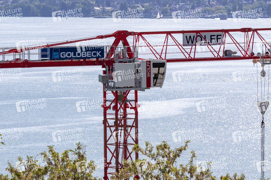 Turmdrehkran am Bodensee für neues städtisches Parkhaus am Fährhafen. Meersburg, 27.05.2020