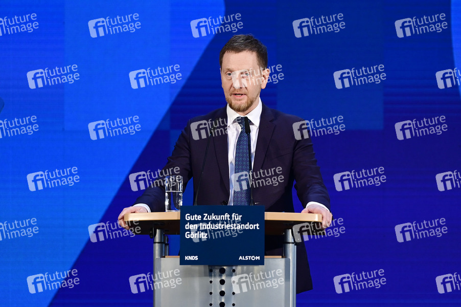 Michael Kretschmer spricht bei Alstom in Görlitz. Vertreter von Alstom und KNDS informieren über die Zukunft des Standortes. Das Unternehmen Alstom, das für die Produktion von Schienenfahrzeugen bekannt ist, wird sich bis 2026 aus Görlitz zurückziehen. Der Rüstungskonzern KNDS wird als neuer Investor den Standort übernehmen. Die Übernahme schafft eine nachhaltige Perspektive für den Standort und einen Großteil der Beschäftigten. Görlitz, 05.02.2025