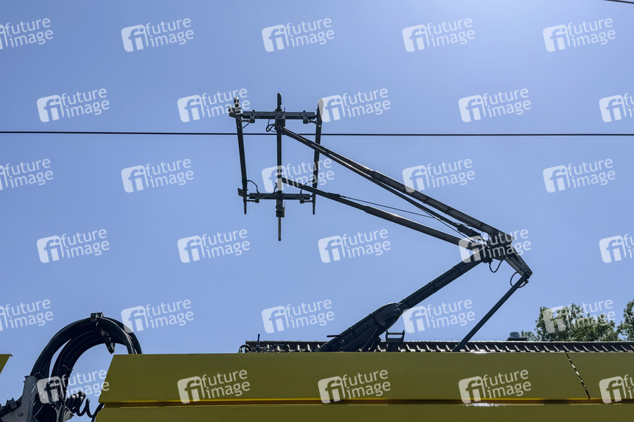 Stromabnehmer-Pantograph - Die Bahn modernisiert die Eisenbahnstrecken. Dabei läuft die Elektrifizierung von Dieselzugstrecken nur schleppend. Eines der letzten Großprojekte war die Elektrifizierung Regionalstadtbahn Neckar-Alb zwischen Tübingen und Herrenberg mit der Ammertalbahn. (Symbolfoto, Themefoto) Tübingen, 19.05.2025