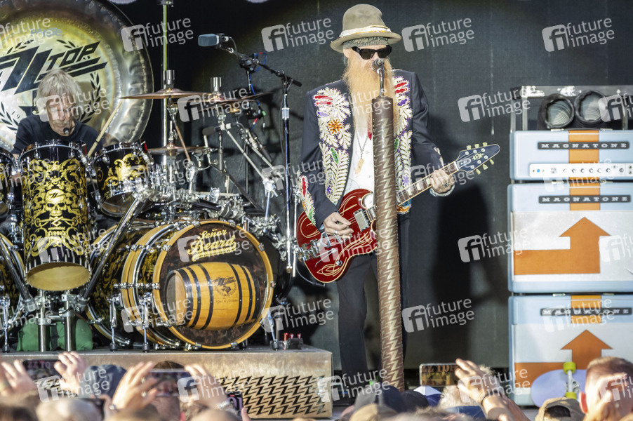 Frank Beard und Billy Gibbons von ZZ Top live beim Sommerfestival 2024 unter dem Motto 'Beats, Bands und Beach' in der Autostadt. Wolfsburg, 13.07.2024