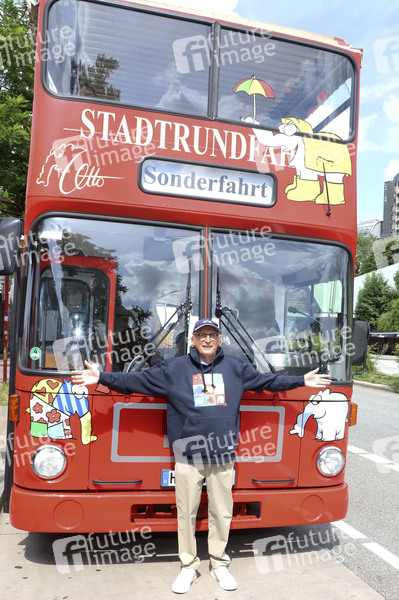 Otto Waalkes bei der Einweihung des Ottifanten-Doppeldeckerbusses an den Landungsbrücken. Hamburg, 06.06.2024