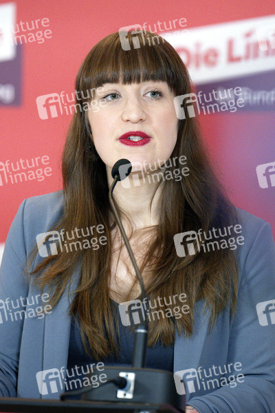 Politik, Statement, Pressekonferenz, PK, Sitzung, Reichstag, Deutscher Bundestag, Demokratie, Parlament, Volksvertreter, MdB, Mitglied des Bundestages, Abgeordnete, Politikerin, Vorsitzende der Fraktion Die Linke