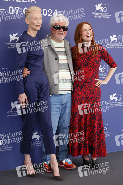 Tilda Swinton, Pedro Almodovar und Julianne Moore beim Photocall zum Kinofilm 'The Room Next Door' auf der Biennale di Venezia 2024 / 81. Internationale Filmfestspiele von Venedig im Palazzo del Casino. Venedig, 02.09.2024